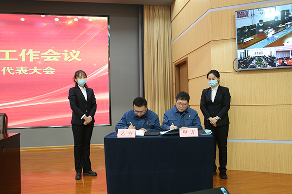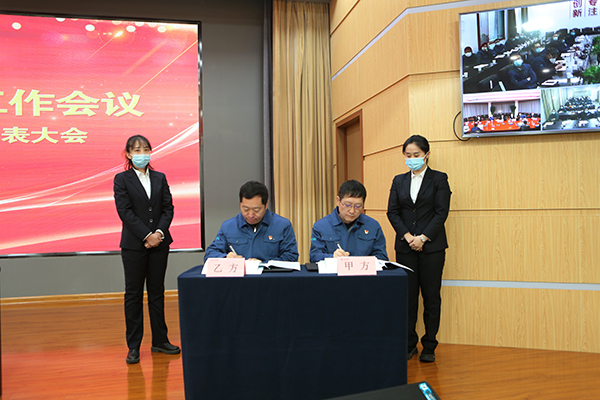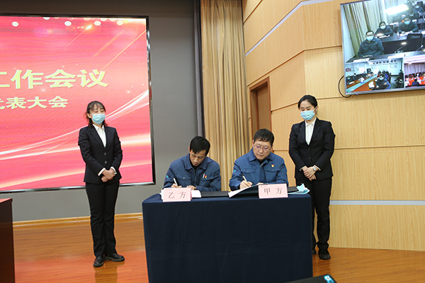 大会表彰了先进集体、先进个人和技术改进、管理提升等优秀成果。总经理呼跃武与邹城公司、淄博中材金晶、销售部、一分厂、设备动力部代表单位负责人签订了《2022年度目标责任书》。